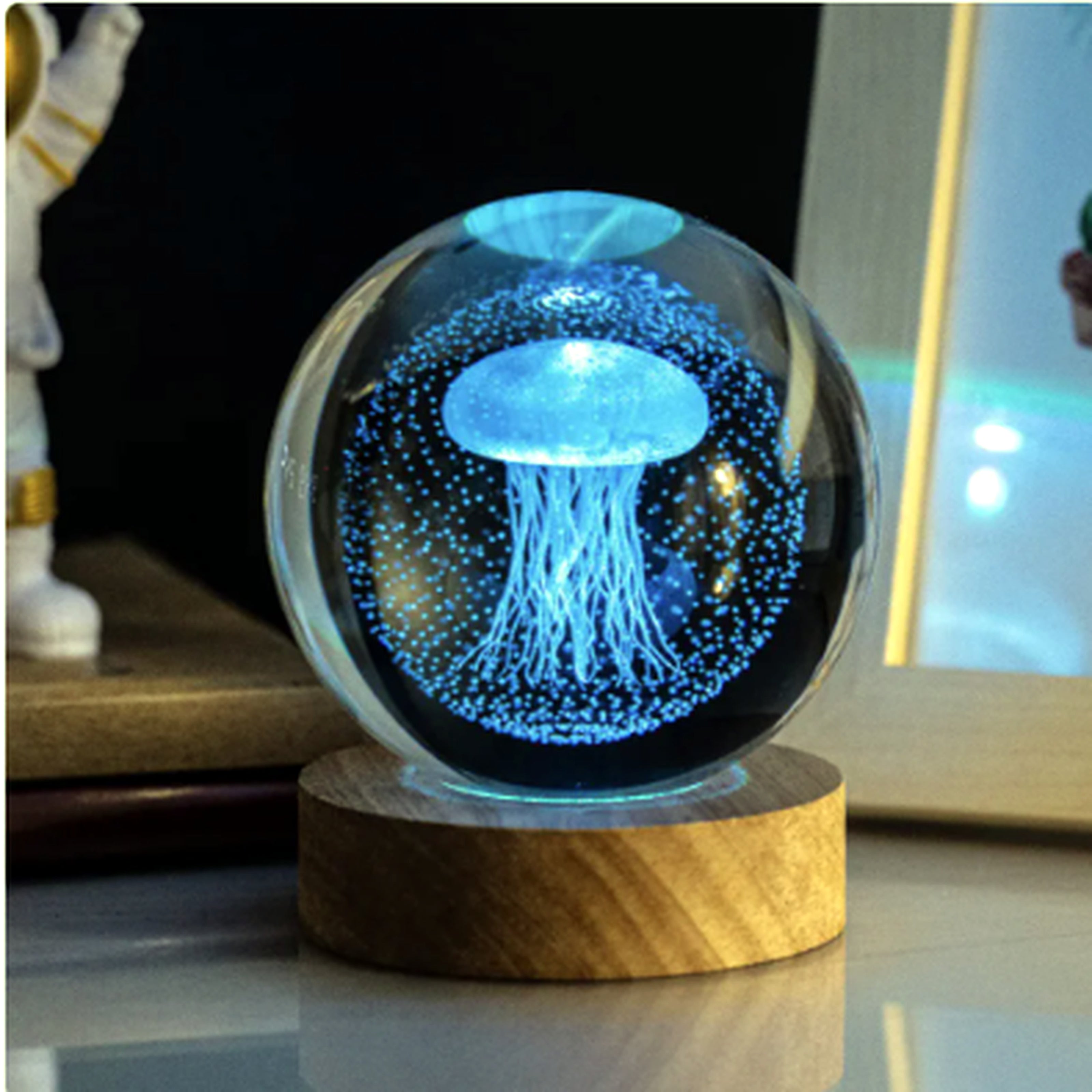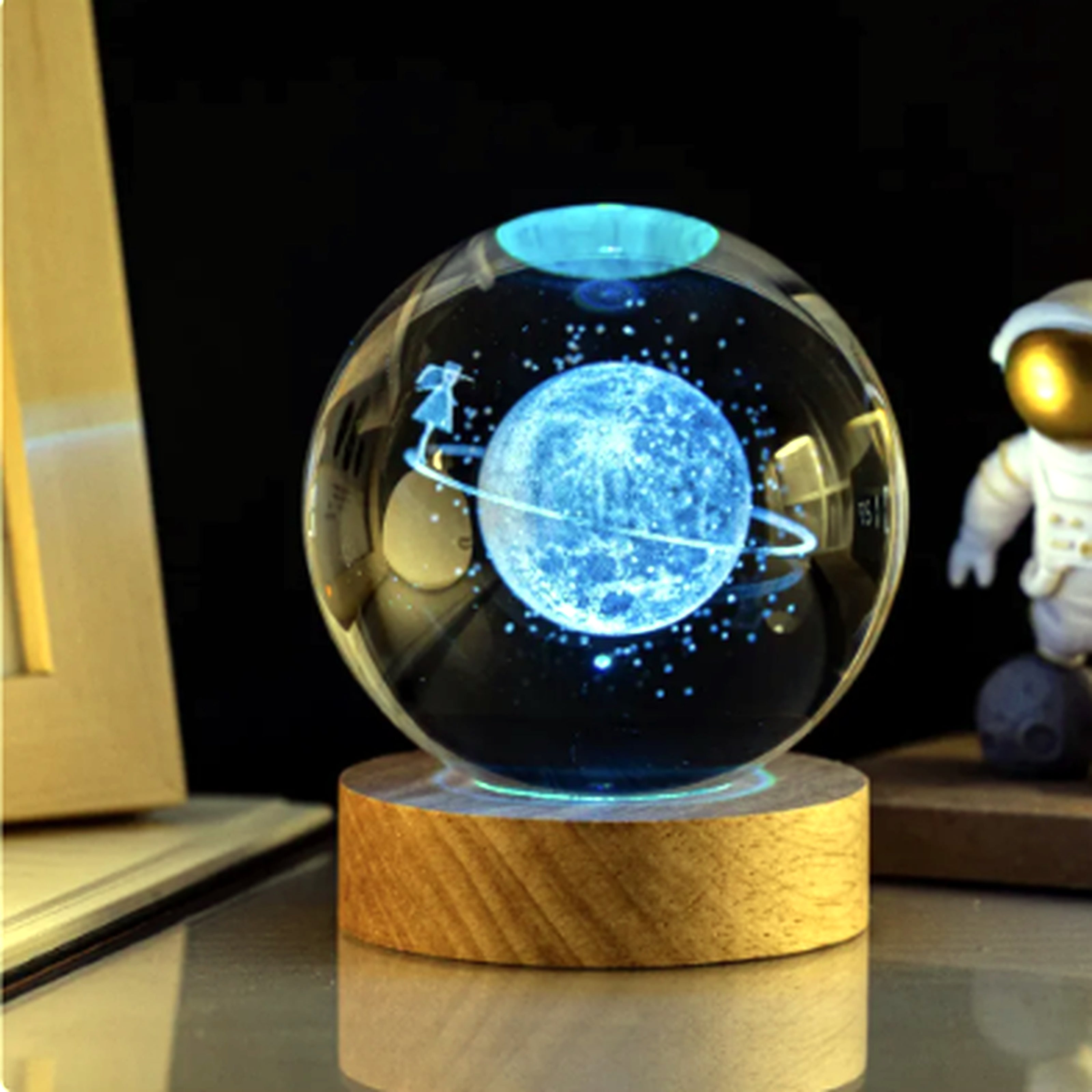 Crafted from optical-grade crystal with a detailed scene suspended inside, each orb comes alive on its warm wooden USB base. The glow is soothing, never harsh—perfect for late-night study sessions, winding down after a long day, or setting the vibe for a movie or date night.